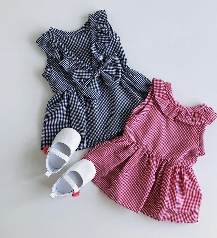 Новые сарафаны в двух цветах: Темносиний 6-9., 9-12., 12-18., 18-24мис.(маломерки) Фуксия 6-9., 12-18мис.(маломерки) Сзади имеют декоративный бант и вырезанную спинку. При необходимости дам замеры