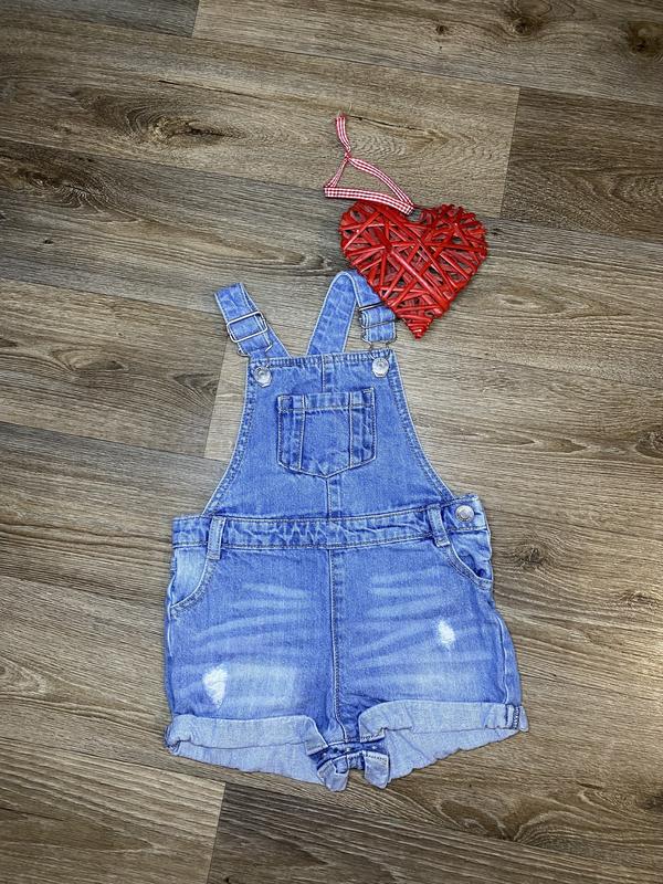 Джинсовый комбинезон фирмы F&F в отличном состоянии для девочки 18-24 мес/92 см. Замеры: длина с лямками на мах-45 см, длина без лямок-36 см, пояс-28 см