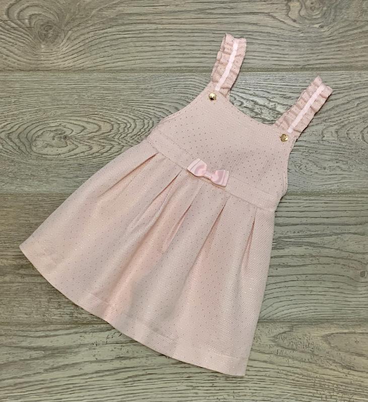 Сарафан Ted Baker на возраст 9-12 мес. Юбка имеет тонкую котоновую подкладку. Нежно-розовый цвет с золотистым мерцанием. Можно надевать с блузкой, футболкой или другой кофтинкой. Состояние новой вещи, без бумажной бирки. Длина с бретелями 46 см Длина юбочки 27 см ПОТ 23 см + (сзади по талии резиночка ) K-26