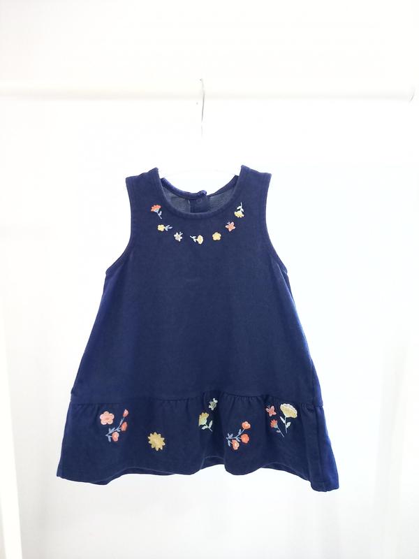 Сарафан весна-лето, тоненький, легкий, 6-9 месяцев, 74 см. Новый, без бирки. Синий цвет и вышитые цветы. Можно носить просто так, а можно под боди или тоненькую кофточку