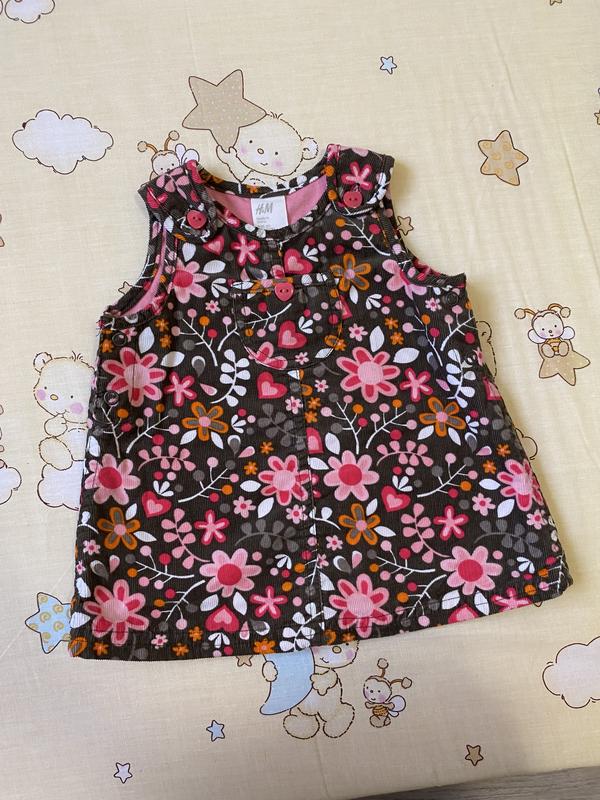 Вельветовое платье для девочки с цветочным принтом от H&M, размер 62 ). Мягкая и комфортная, изготовлена из 100% хлопка, что обеспечивает комфорт в течение всего дня. Идеально подходит для осенне-зимнего сезона, стильная и удобная для малыша. Стан - идеальный Ар.997