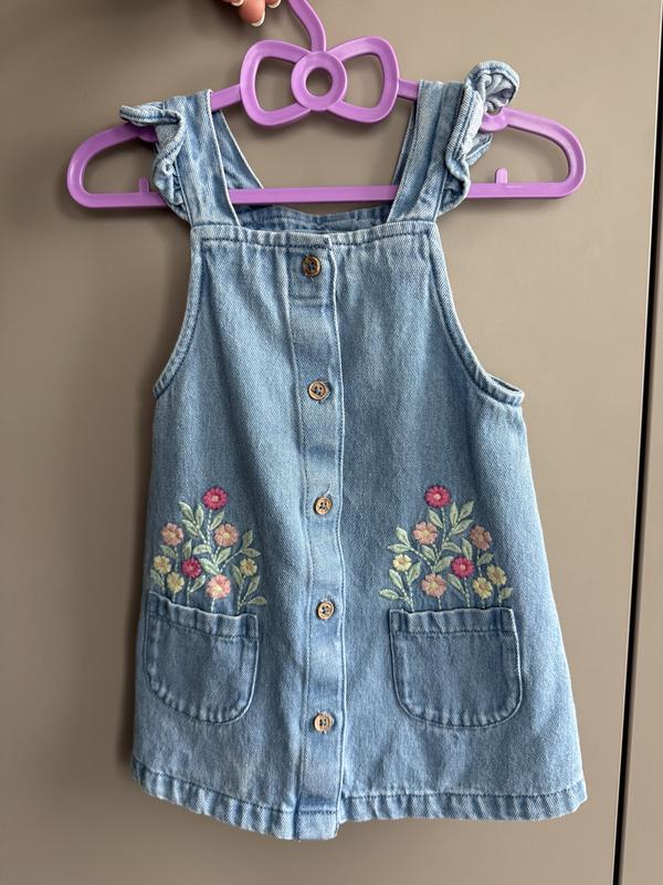 Сарафан джинсовий з вишитими квітами, стан ідеальний, розмір 6-9 міс, 74 розмір