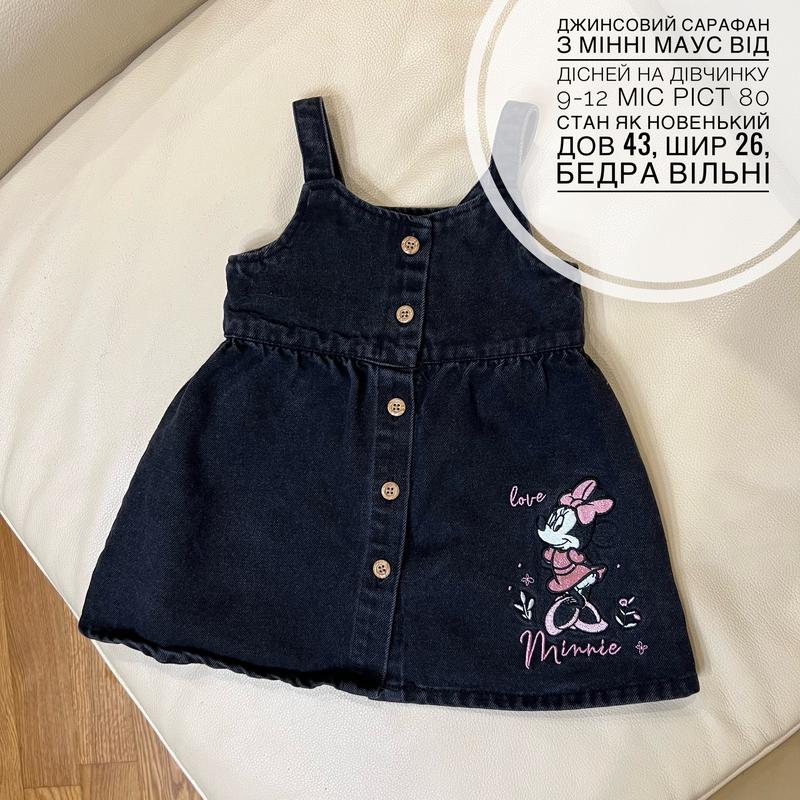Джинсовий сарафан з Мінні Маус від Дісней на дівчинку 9-12 міс ріст 80 стан як новенький дов 43, шир 26, бедра вільні