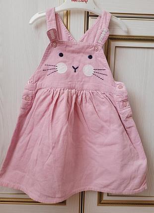 в идельном состоянии розовый сарафан с милым зайчиком для девочки. бретельки регулируются. есть подкладка. Размер 12-18 месяцев.
