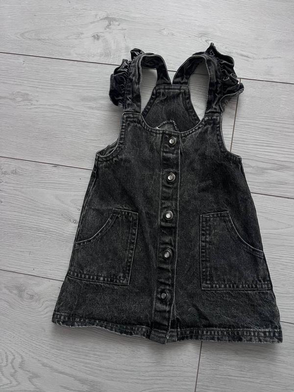 Джинсовий сарафан 86 розмір( 12-18 місяців ) В ідеальному стані, прямого крою Сірого кольору( мокрий асфальт) Заміри: Довжина сарафана - 47 см; Напівобхват грудей - 27 см; Напівобхват талії - 31 см;