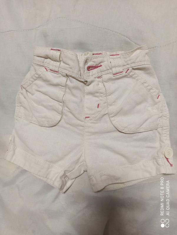Летние льняные шортики на 1-4 года, хотя по бирке 9-12 месяцев. В поясе утяжка. В составе хлопок/лен