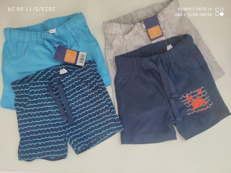 ЦЕНА В ОГЛАШЕННЫЕ ВНИМАНИЕ ЗА НАСТРОЙСТВА. ПРОДОБРАЕТСЯ НАБОРОМ 2 ШТ. ❌Размер 62/68(2-6месяццв) Длина -19,пояс-21 200грн/набор ✅ Размер 74/80(6-12месяц)Длина-20,пояс-22. 220грн/набор ✅86/92(12-24месяц)Длина-24,пояс-23 220 грн./ Набор Шорты из органического хлопка LUPILU® для мальчика, 2 пары серый: 98% хлопок (органика), 2% вискоза (Lenzing) темно-синий/синий: 100% хлопок