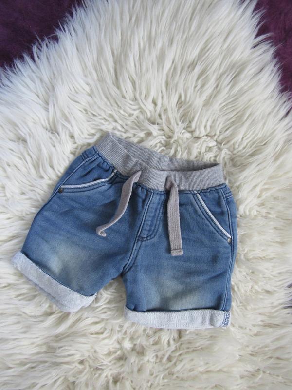 Трикотажные джинсовые шорты двунить 3-6 мес., дл.22, шаг 6, пояс рез.19, сост.отличн.- 80 грн.