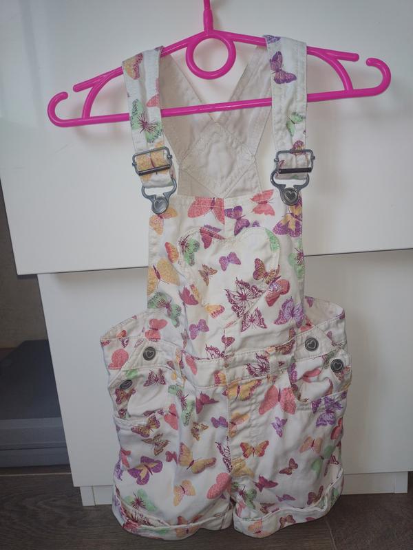 Яркий комбинезон для девочки, в красивом состоянии. Бутылочка не имеет. Есть дефект на кармане последнего фото. Максимальна длина виробу 49 см, пояс 28,5 см, поб 30 см, крок 4 см.