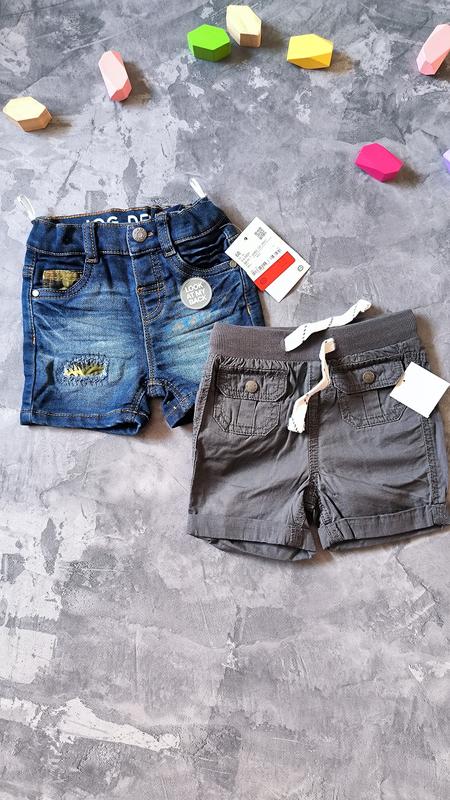 Стильные джинсовые шорты от C&A(68, 3-6 мес) ,пояс 19, тянется до 23, длин 20 Цена 200 грн Графитовые шорты из облегченного картона Kiabi (63-69, 6 мес) Пояс 20, тянется до24, длин 21 цена 150 грн