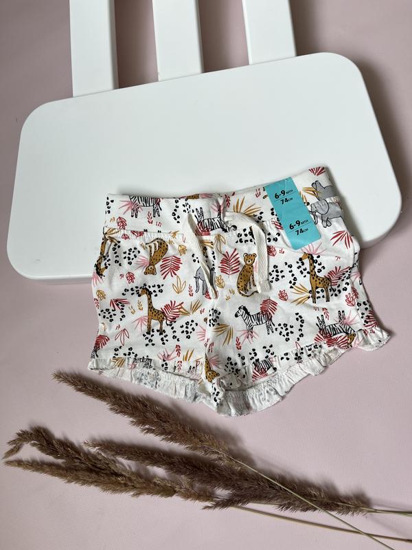 Шортики для девочки 🌸 в модный принт от Примарк 🌱 💯 органический котон 6-9 мес (74 р.) Крупномерят! 🌸 Длина - 18.5 см, в поясе - 21.5 см