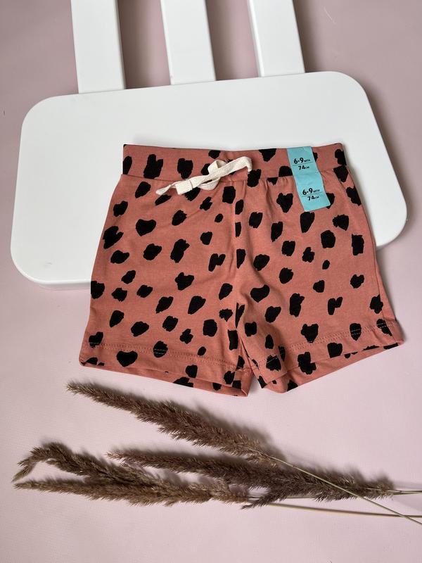 Симпатичні шортики в модний принт🌸 100% котон 🍃 від Primark 6-9 міс (74 р.) Більшемірять, дивіться заміри 👍 🌸 Довжина - 22.5 см, в поясі - 21 см