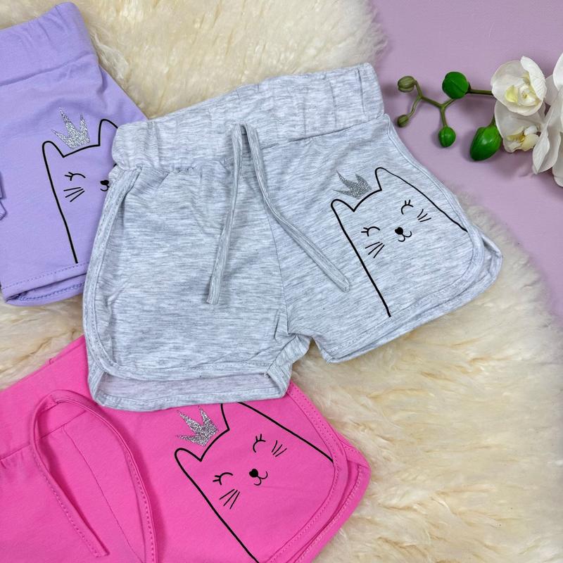 💕Шорти Котик. Ткань турецкий трикотаж. В поясе резиночка. Малюнок -принт, накат. Красиво тянется ткань. Производитель Турция 📐Замеры: (80-86) - довж. 20/полуобхв 29 (86-92) - довж. 21/полуобхв 29 (92-98) - дл. 21/полуобхв 31 (98-104) - довж. 22/полуобхв 32