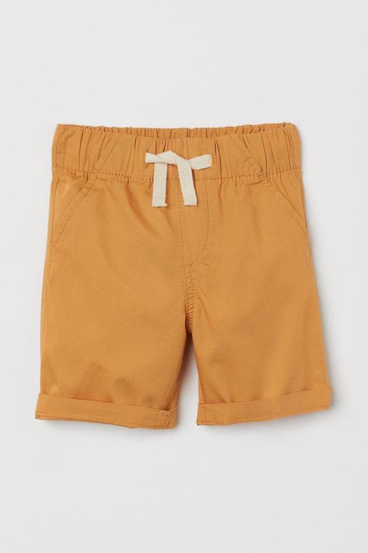 Шорти з м’якого бавовняного попліну з еластичною талією на зав’язках, штучними шортами та штучними діагональними кишенями.