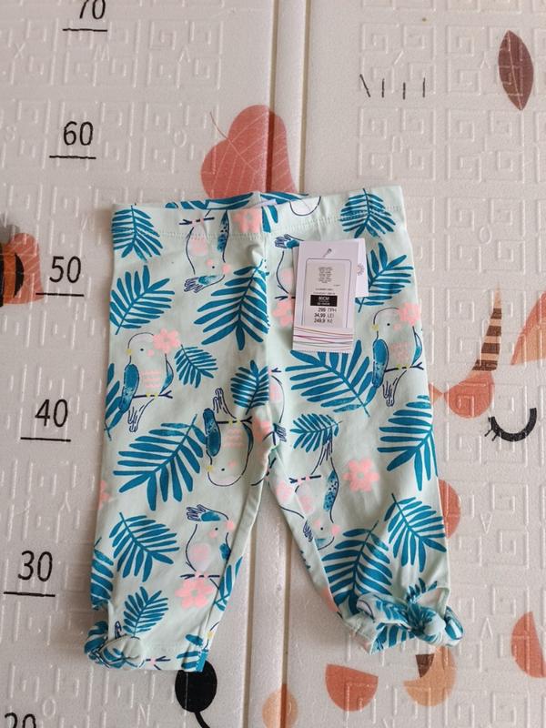 Яркие бриджи с попугаями, лосины укороченные на девочку 80 см. По бокам внизу красивые бантики.