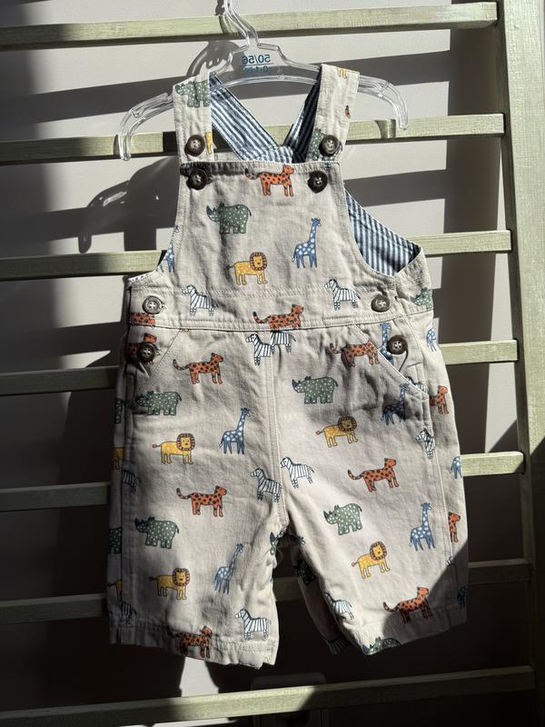 Фирменный комбенизон со зверятами. Хлопок плотный. На 9-12 месяцев. Регулируется. Внизу на заклёпках.