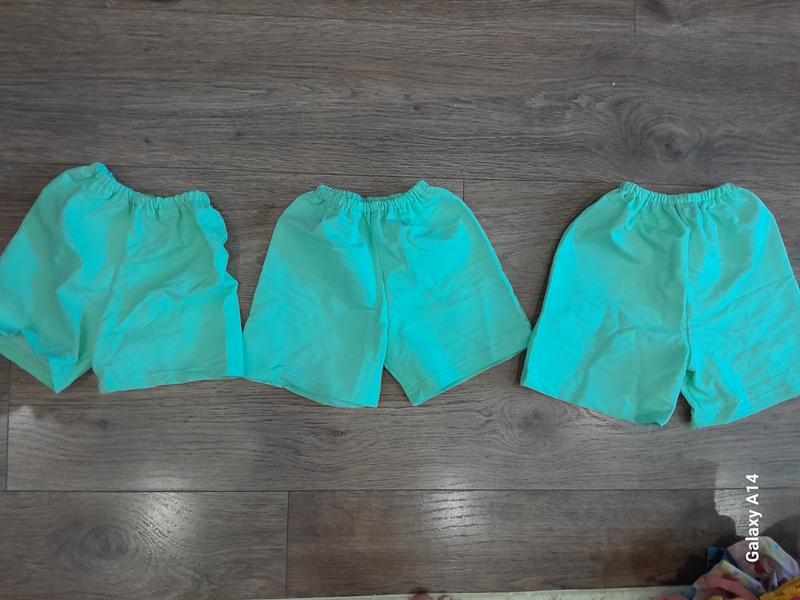 Літні шорти унісекс, ментолового кольору. Матеріал дуже приємний до шкіри. В наявності 3 пари на різний вік. від 1-2 років до 4 років.