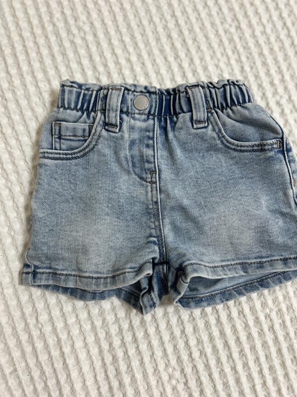 Джинсовые шорты на девочку ( 6-9) месяцев. Состояние новых . Ткань мягкая с эластаном. На поясе резинка.