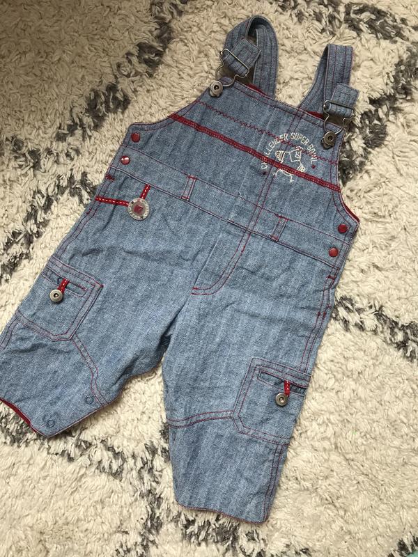 Крутой джинсовый комбинезон на хб подкладке размер 6 мес, состояние новой вещи
