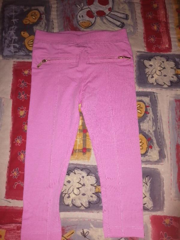 Нежно розовые лосины (штаны). Пояс на резинке, есть 2 кармана-обманки с "золотыми" замками. К низу сужены. Не теплые.