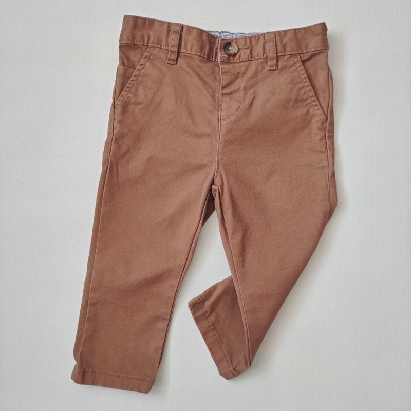 Штани у класичному стилі, в ідеальному стані. Мають утяжки по бокам. 🔻Розмір 9-12 міс. 🔻Зріст - 75/80 см. 🔻Довжина загальна - 41,5 см, пояс - 24 см, крок - 23 см, посадка - 18 см.