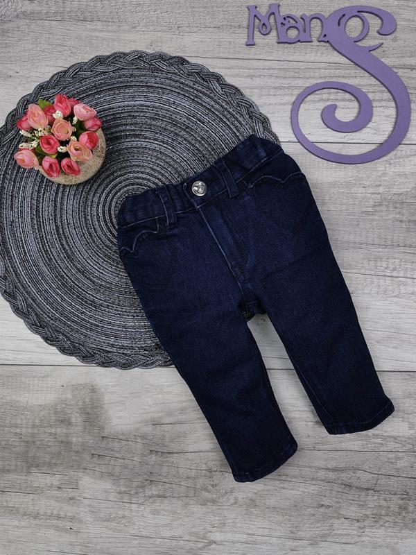 Детские джинсы для девочки H&M тёмно-синего цвета Состояние: б/у, в отличном состоянии Производитель: H&M Размер: 68 (4-6 мес) Цвет: тёмно-синий Состав: 65% хлопок, 17% полиэстер, 16% вискоза, 2% эластан Замеры изделия: Полуобхват талии (ширина): 23-27 см (резинка) Полов бёдер: 27 см Длина: 37 см Внутренний шов: 19 см