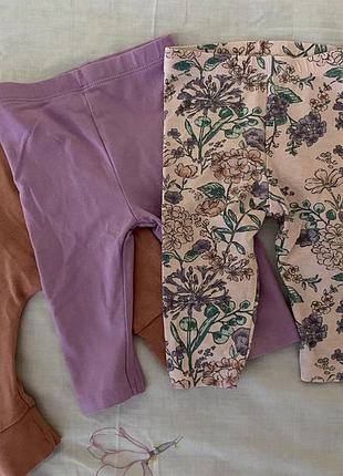 Лосины 0-3 мес коричневые, 3-6 мес фиолетовые и в цветочек