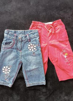 Джинсы и штаны для девочки одним лотом Размер указанных 68 см Джинси ПОТ 21 см Посадка 16/23 см Длина 33/17 Штани ПОТ 19 см+ резинка Посадка 17/21 см Длина 36/20 см