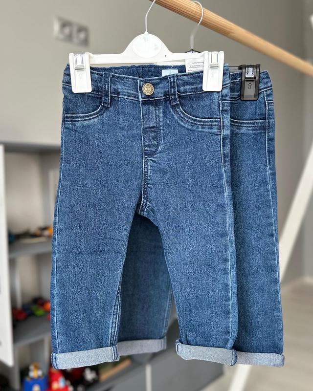 Эластичные джинсы, очень хорошо тянутся. Цвет передан без коррекции. Имеют карманы сзади, спереди имитация карманов. Застегиваются кнопкой. В поясе есть резующая резинка. Замеры выполнены с НЕ подвернутыми джинсами !! Состав : хлопок 78%, полиэстер 20%, эластан 2% Размеры в наличии: 12-18 месяцев (86 см) 1,5-2 года (92 см) Замеры: 32-18 месяцев: длина 47 см, внутренний шов 28 см, пояс 23 см ( регулируется по необходимостью, хорошо тянется ) 1,5-2 года : длина 51 см, внутренний шов 31 см, пояс 23 см.