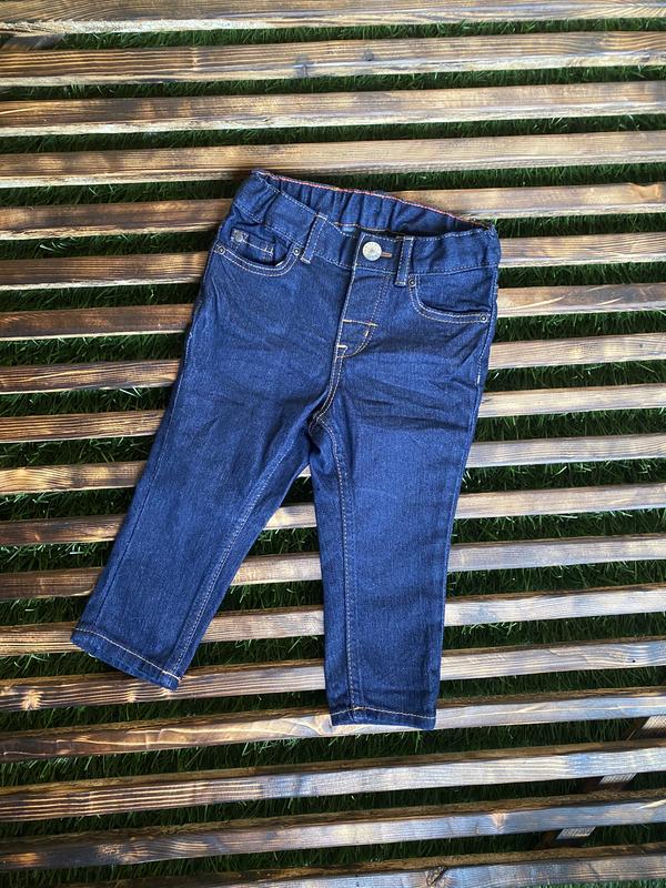 Детские джинсы, в состоянии новых. Цвет темно синий. Размер 6-9 месяцев. Длина 43 см Пояс 24 см , резинка тягнеться до 27 см Бедра 27 см Ножка от матни 27 см