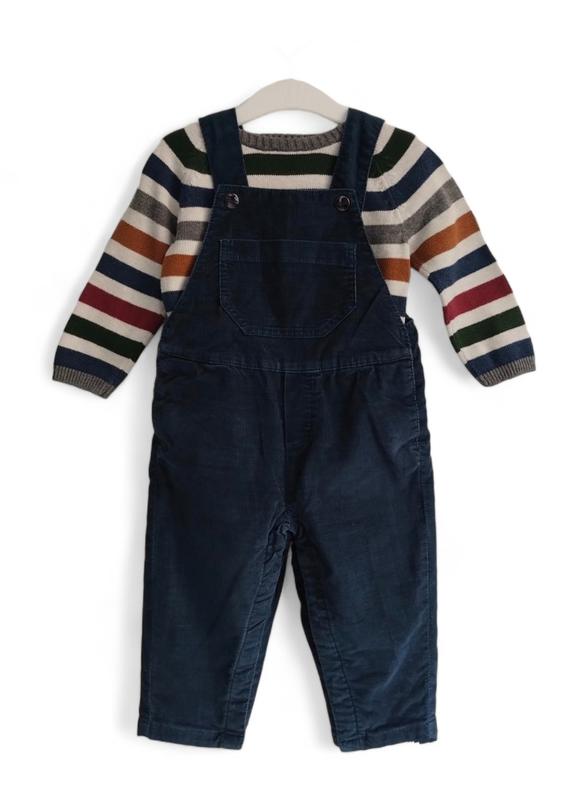 Речі в гарному стані. Ціна за 2 речі. Джемпер: довжина - 36, рукав від горловини - 34, пог - 28. Тягнеться. Комбінезон : довжина регулюється, максимальна - 68, крок - 26, поб - 32.