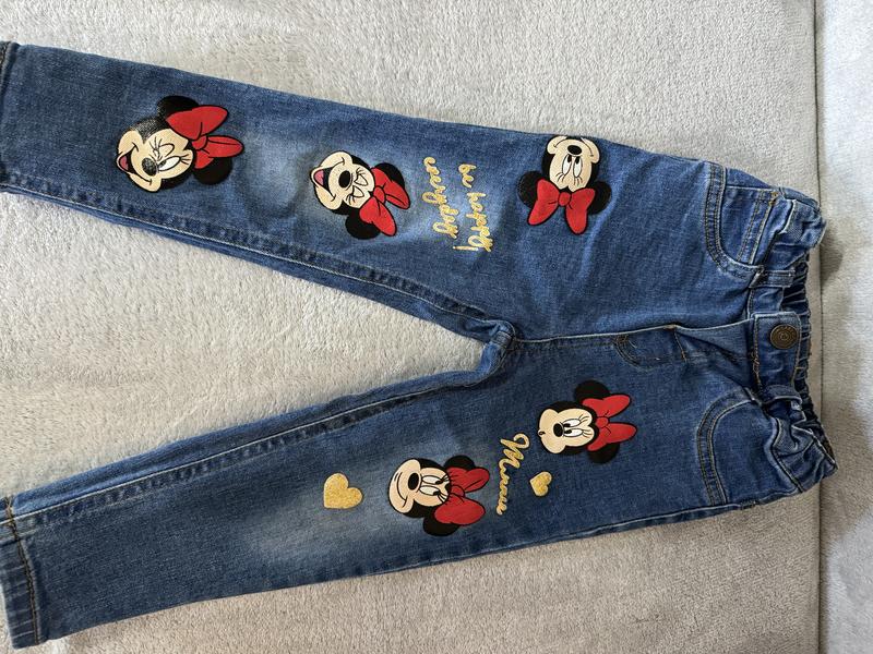 Детские джинсы для девочки с микимаусами. Размер 92см.На резинке и застежке!