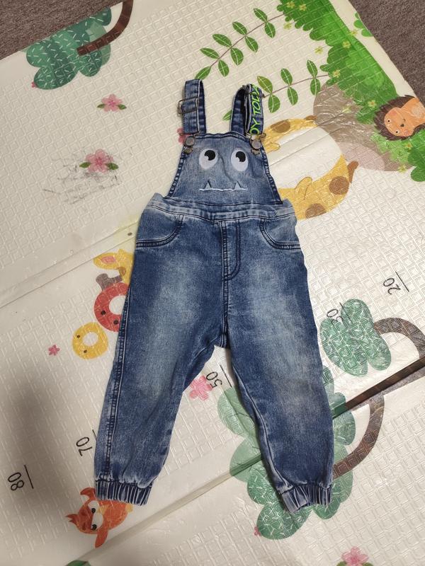 джинсовый комбез на мальчика 12-18 месяцев, стильный, удобный, пояс с резиночущей