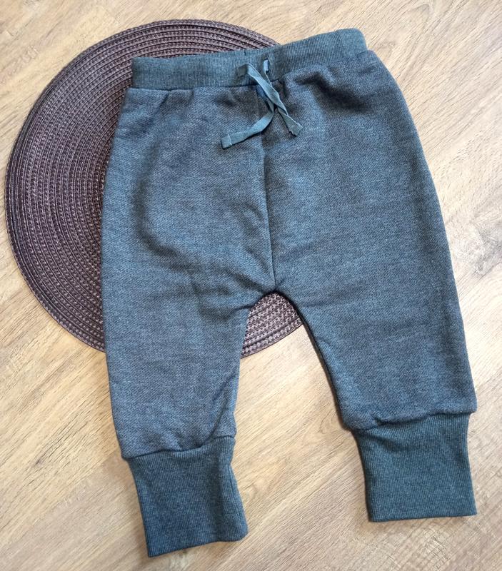 Очень удобные брюки на малыша, присутые снизу тризиночки.Шнурок рабочий. На 6-9мес. Длина из ризочкамт -50см. шаговой шов-25см талия по резинке -25см..