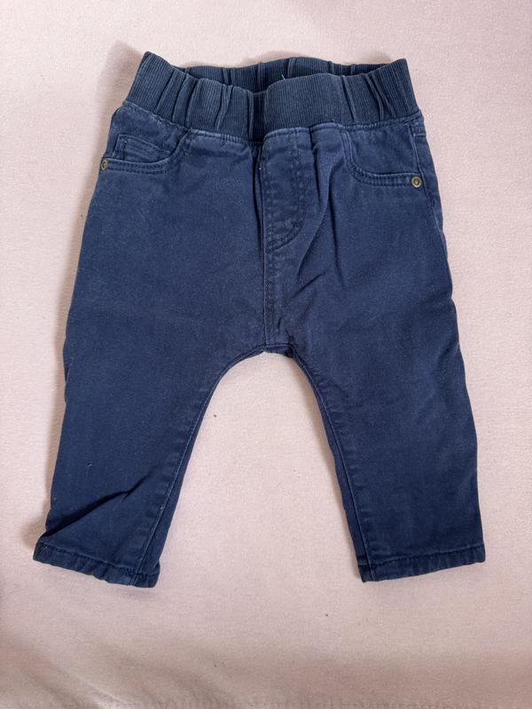 Брюки темно-синие джинс, бренд H&M, размер 68, в красивом состоянии, без нюансов. Снизу можно подкатить по длине. Серая хлопковая подкладка внутри.