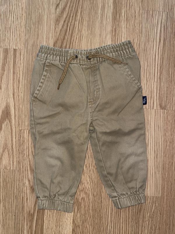 Легенькі, без підкладки Розмір по бірці 12 місяців, але на рік будуть короткі, краще брати на 4/9 місяців Стан наближений до нових, встигли вдягнути буквально 1/2 рази Орієнтуйтесь на заміри: Напів обхват талії: 22 см вільний стан, тягнуться до 24.5 см Напів обхват бедер: 26 см Довжина штанців від пояса 35.5 см Крок 19 см