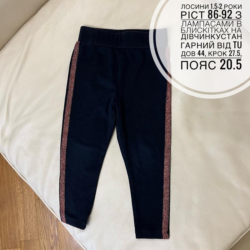 Лосини 1.5-2 роки ріст 86-92 з лампасами в блискітках на дівчинкустан гарний від TU дов 44, крок 27.5, пояс 20.5