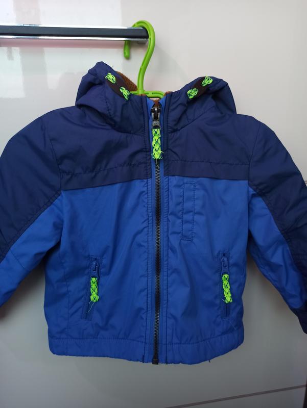 Куртка-вітрівка в чудовому стані, є тільки незначні ковтунці на вороті. Розмір 18 міс, заміри: довжина спереду 33, ззаду подовжена 38; ширина 33, рукав від шиї 36.