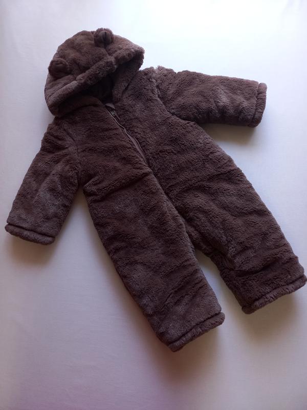 Теплий пухнастий комбінезон коричневого кольору на замочку. Розмір 6-9 місяців. Бежевий пухнастий комбінезон із закритими ніжками. Розмір 3-6 місяців