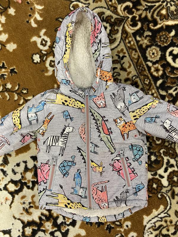 Дуже класна куртка Тепла , легка , синтепон підкладка , овчина по спинці, животику і капюшону Вказано до 18 місяців , по факту носили до 24 міс Заміри у фото