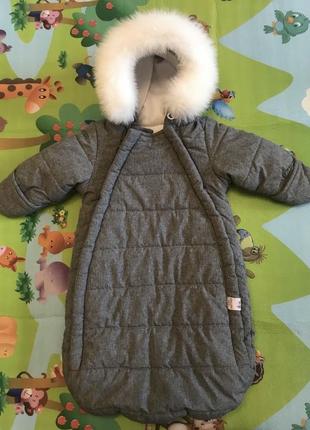 Продам зимовий комбінезон конверт від 0 до 6 місяців. Хутро відстібається. Дуже теплий, усередині фліс.в ідеальному стані плюс шапочка в подарунок.
