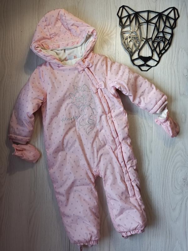 Ніжний комбінезон з колекції Disney в ідеальному стані але є нюанс Хтось вирішив на капюшоні відрізати хутро і зачепив ножицями тканину ( на останньому фото ) ... при носінні не помітно але ціна мінімальна На зріст 86 см Д - 79 см Ш - 35 см Р - 33 см