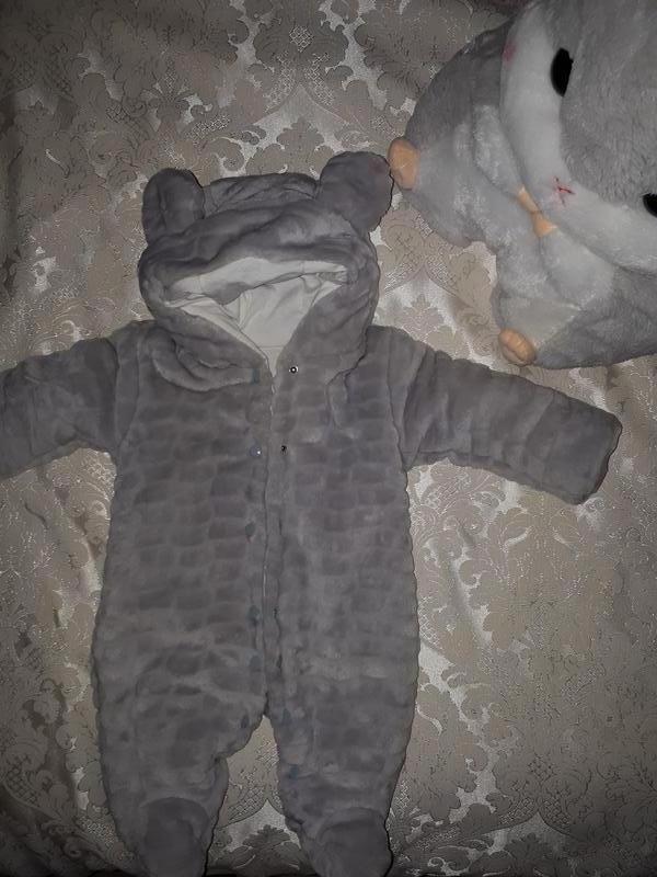 Комбинезон (человечек)плюшевый, теплющий, мягусенький, состояние идеальное, мы его одевали на выпеску, тогда был большим , а сейчас маленький , от 0 до 3м зависит от роста малыша, замеры по запросу