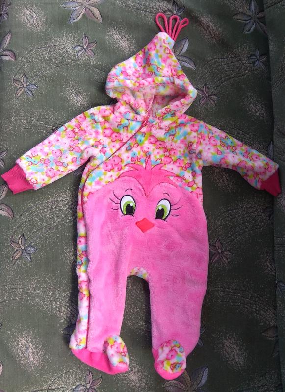 Велюровый, очень мягенький, приятный на ощупь, на рост до 62 см., одевали 1 раз.