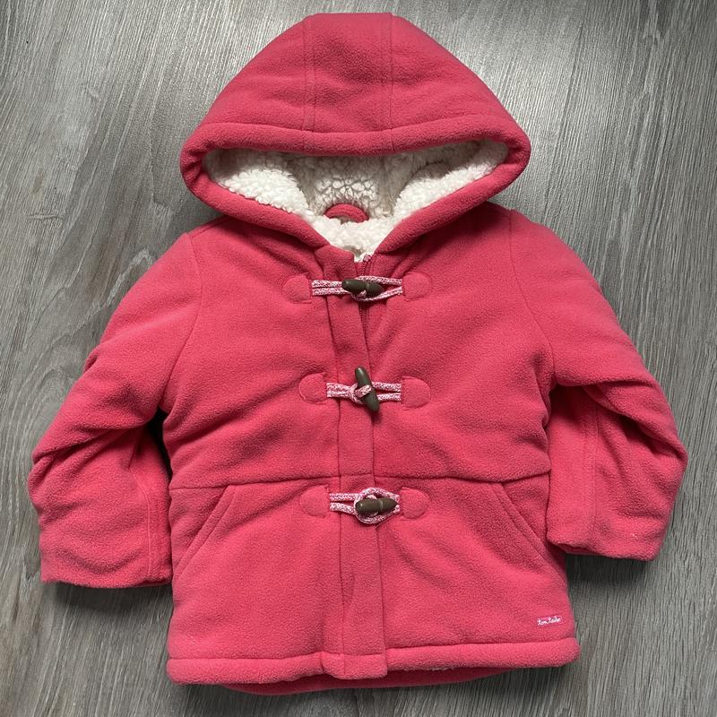 Дуже тепленька курточка від Tom Tailor, на холодну осінь/весну, була одягнена один раз, тому стан нової, розмір 9-12 місяців, колір малиновий