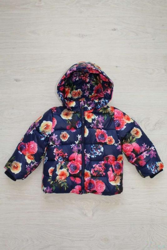 Яркая демисезонная куртка для девочки с капюшоном. Рассчитана на холодную осень и европейскую зиму. Цветочный рисунок курточки будет радовать вас и вашу малышку в холодные серые дни. Закрывается с помощью молнии. Впереди имеет два врезных кармашка. Рукава дополнительно имеют трикотажные манжеты. Состав: полиэстр - 100 % Наполнитель: синтапон - 100 % Подкладка: флис (полар) - 100 %