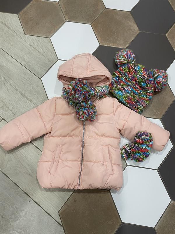 Куртка reserved ріст 74 та головний набір next 3-9 місяців, стан нових речей. Шапка та варішки на флісі. Куртка поліестер на флісовий підкладці. Рукав 27, плечі 26, довжина 37, обєм 32