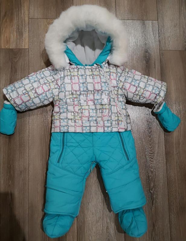 Носили с 3 месяцев конвертиком, а потом сделали ножки и до 7 месяцев относили с удовольствием холодную осень, зиму и начало весны. Овчина очень тёплая, съёмная на змейке, сапожки, варежки, мех на капюшоне всё съёмное. Элементарно стирается в стиральной машине. 74 размер