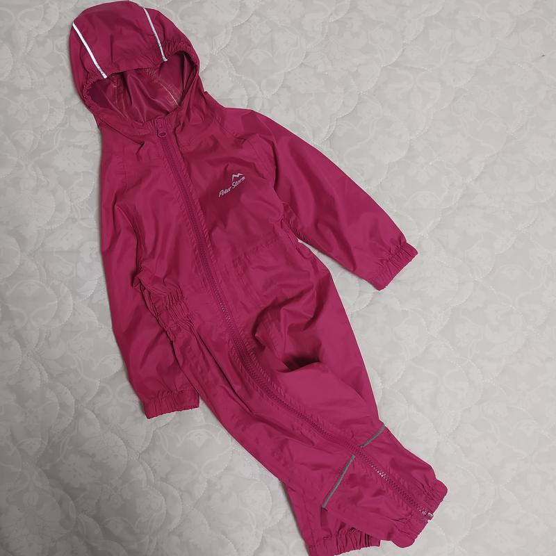 Комбинезон-ветровка-дождевик 6/12 мес.,есть светоотражающие полоски.Замеры:рукав от капюшона 34 см. см.длина 65 см. Есть нюанс царапина на рукаве.Цена 150 грн.