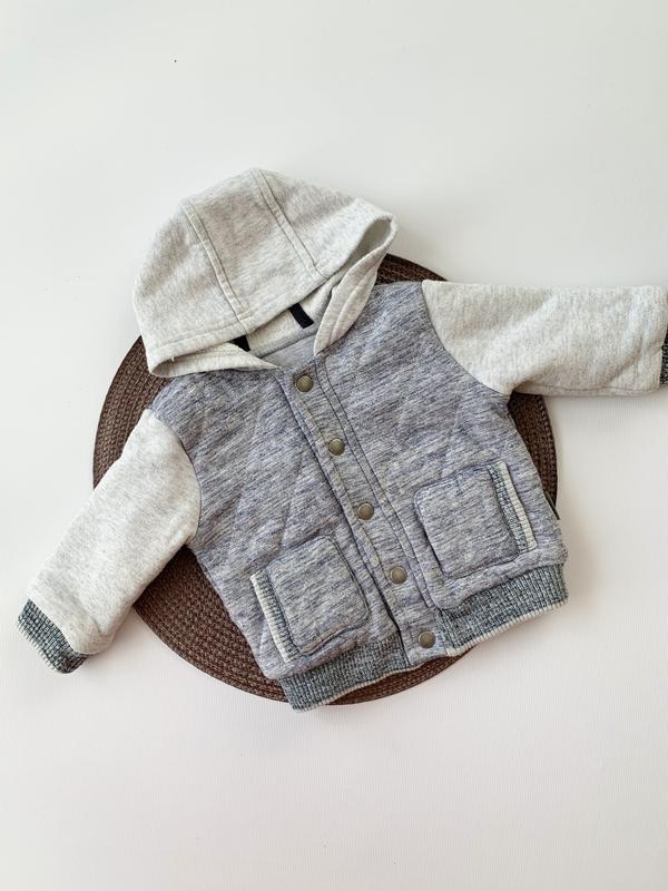 Стильна куртка-бомбер, яка підійде на весну і теплу осінь. Утеплена тонесеньким синтепоном Пише, що на зріст 68-74 см, ми носили довше, до 1 року Заміри можу зробити На останньому фото є як сидить (також в наяаності є така кофтинка)